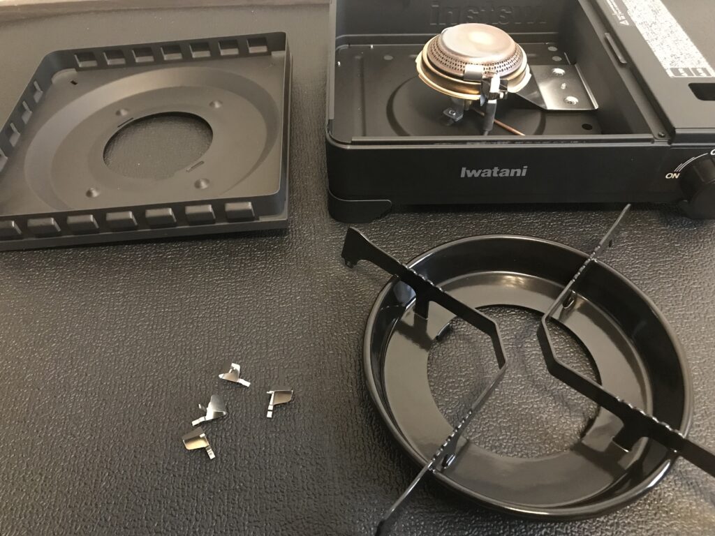 風防・五徳、もちろん外して洗うことが可能。焼き肉など油ハネする料理をしたあと、コンロとかめっちゃ綺麗にしておきたいですよね。タフまるは家庭用コンロ同様、しっかり綺麗にできちゃいます。