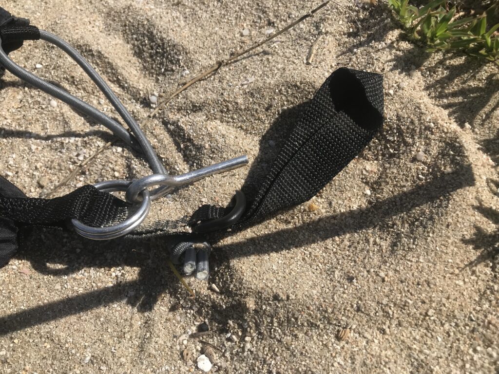 ☑️ 残りのフック(黒色ベルト)をポールに掛ける。
