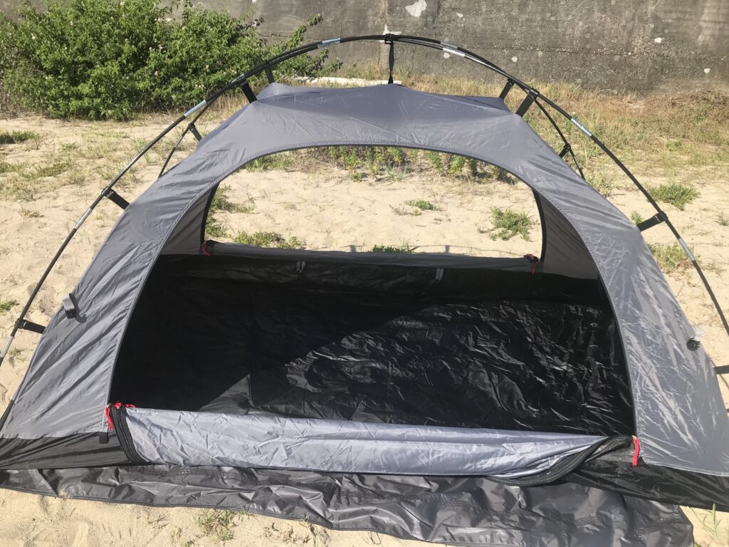 特に買って良かったと思えたのはダークルーム加工。夏の強烈な日差しも大幅カットしてくれるので、風通しを良くすればテント内がかなり涼しくなります。